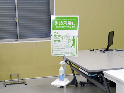 足踏み式消毒スタンドをカスタマイズして設置しました